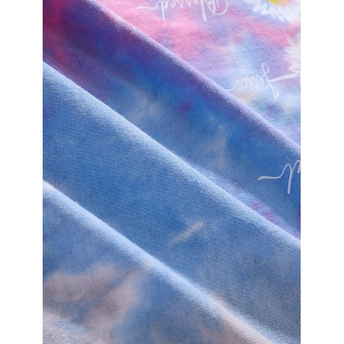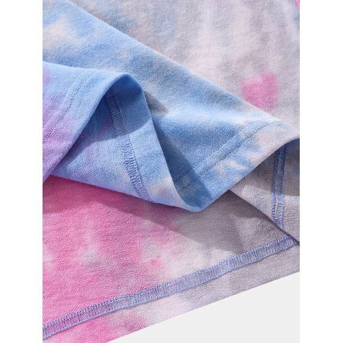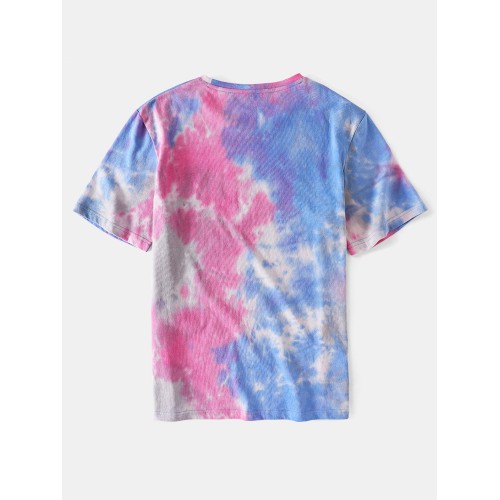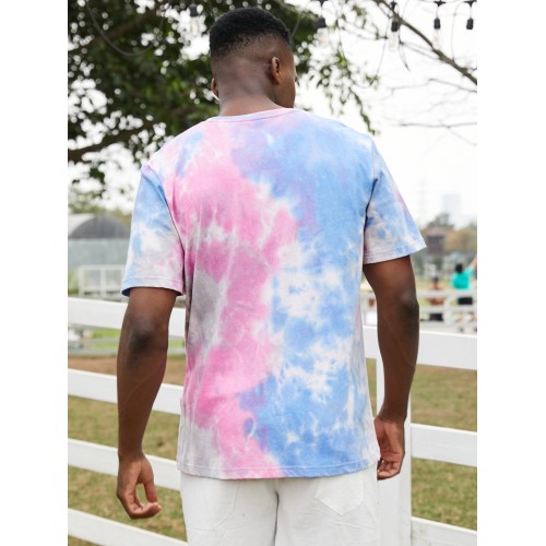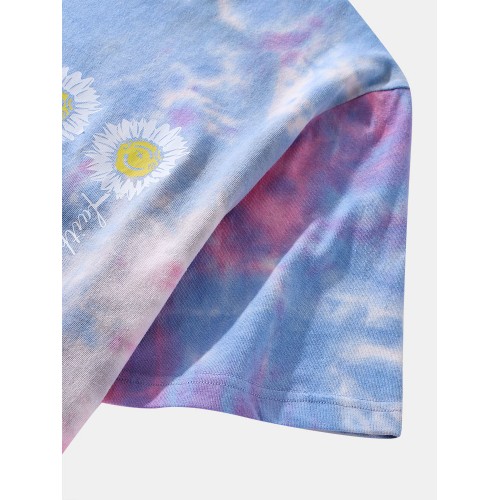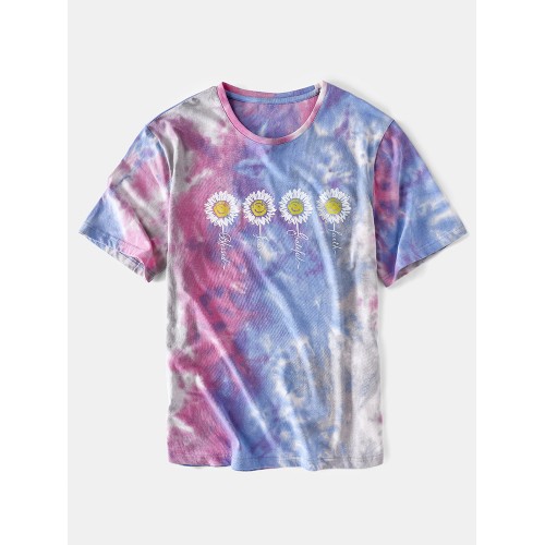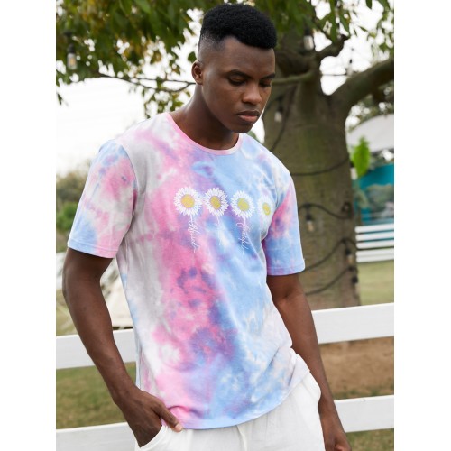 Mens Small Flower Print Tie Dye Round Neck Short Sleeve T Shirt