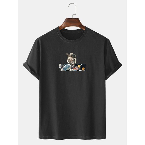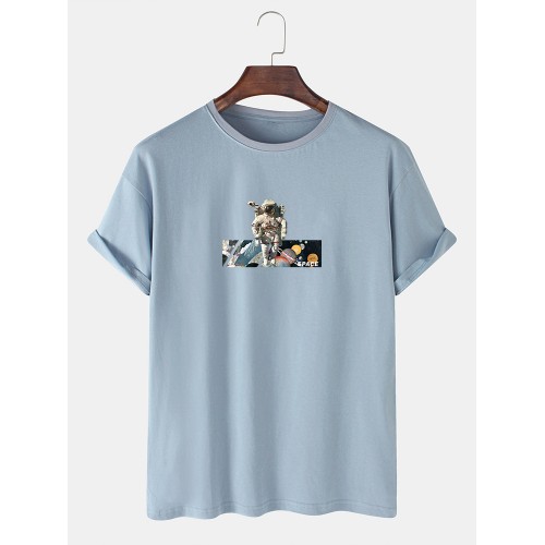 Mens Space Astronaut Graphic 100 Cotton Loose Short Sleeve T Shirts