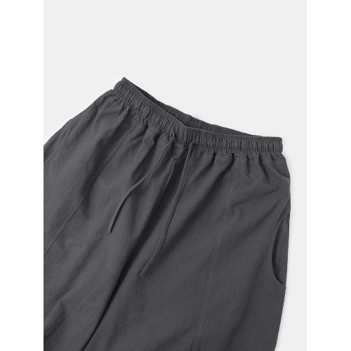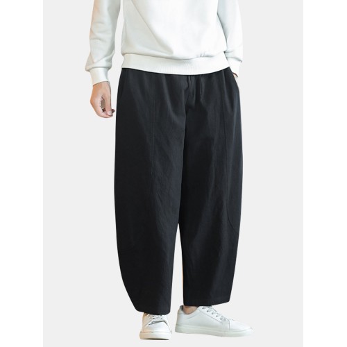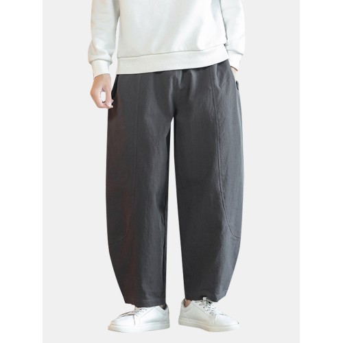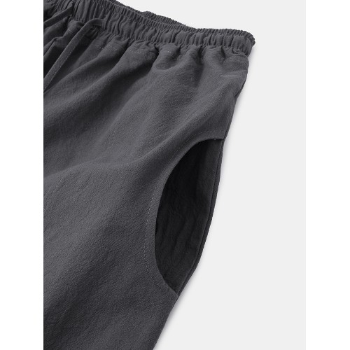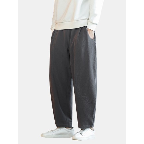 Mens Solid Color Cotton Linen Loose Casual Simple Wide Leg Pants