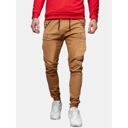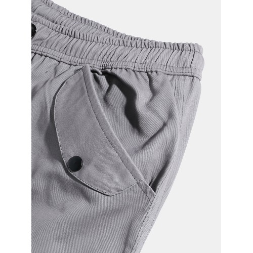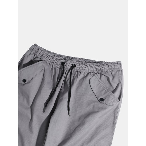 Mens Solid Color Drawstring Mid Waist Overalls Pocket Cargo Pants