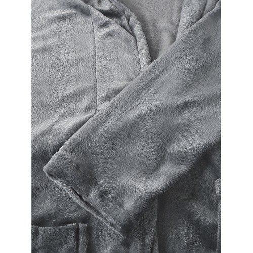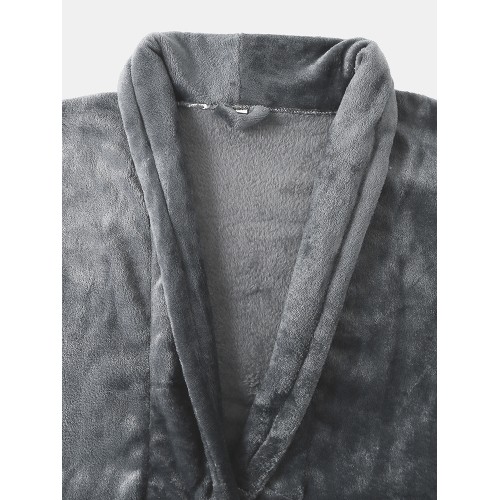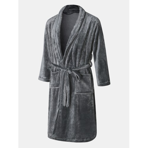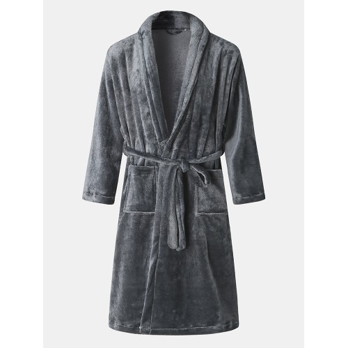 Mens Solid Color Flannel Thick Double Pocket Sashes Home Sleepwear Robes